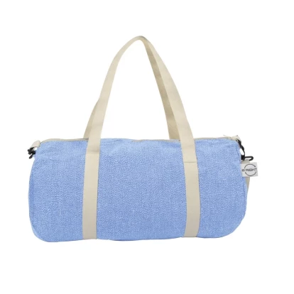 Torba sportowa, podróżna wykonana z bawełny z recyklingu i poliestru z recyklingu, posiada certyfikat GRS (Global RecycIed Standard), duża przegroda główna na zamek błyskawiczny, uchwyty i regulowany pasek na ramię